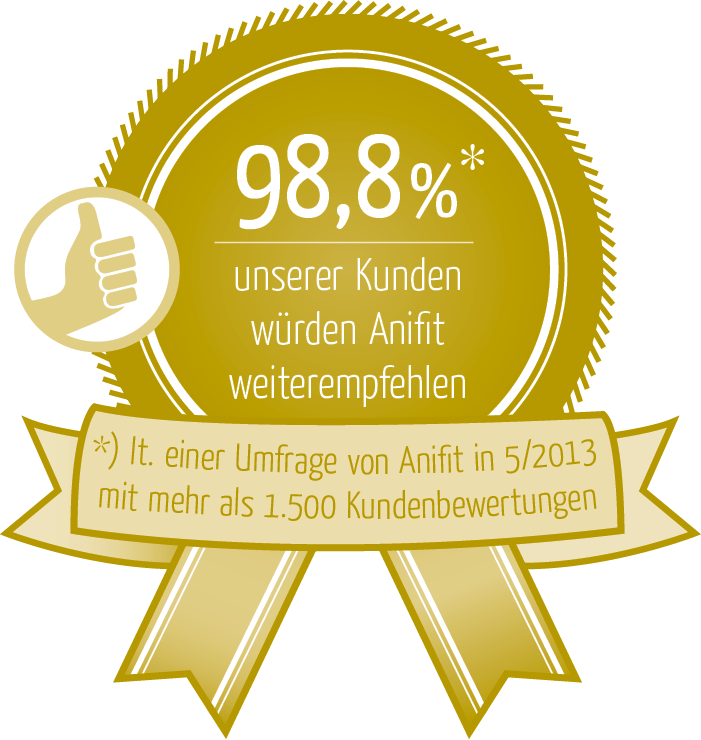 Sehr stolz dürfen wir über das Ergebnis der Frage: "Würden Sie Anifit weiterempfehlen" berichten. 98,8 % unserer Kunden bejahen diese Frage!